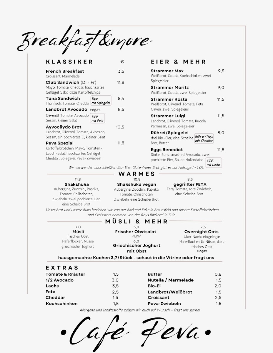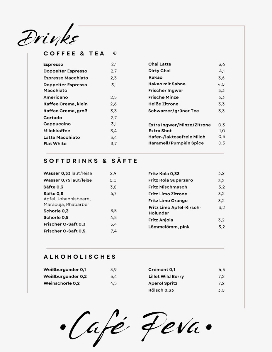 Café Peva Menu